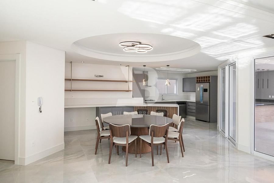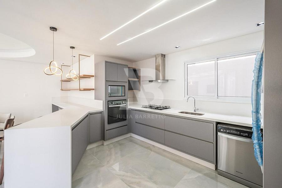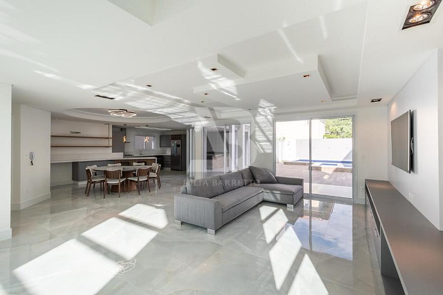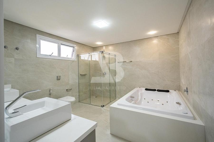 Possui 5 suítes sendo 1 no térreo e 4 no pavimento superior.